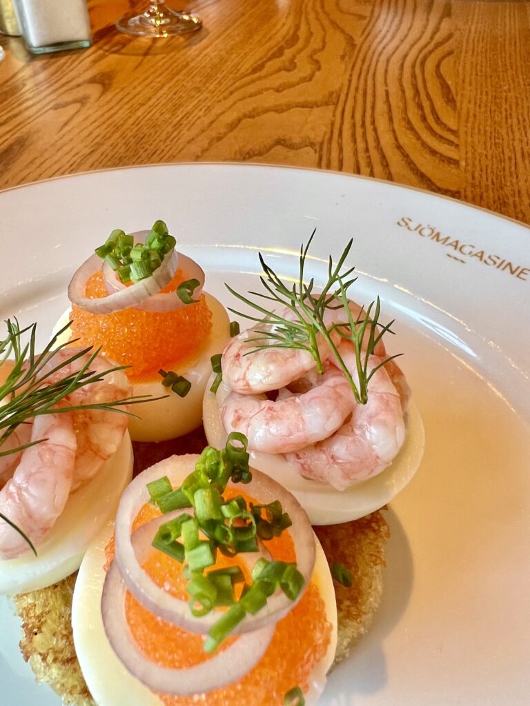 Ägghalvor (4st med Kalixlöjrom, 4st med räkor) 198:-